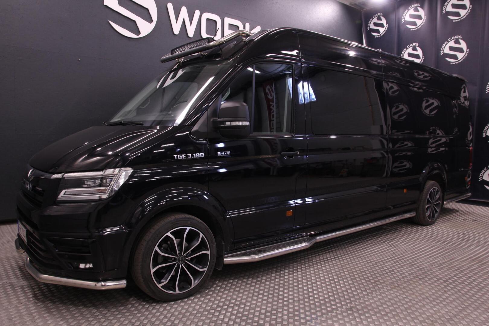 Sisusta rakennetaan ammattimaisin ottein ja jälki on kuvien mukaista eli tyyliä, näyttävyyttä sekä käytännöllisyyttä löytyy! Kuvien sisustaan pystyy vielä vaikuttamaan, mutta kuvista saa ensimakua tyylikkyydestä. Nämä ovat loistavia kokonaisuuksia ja sopivat moneen eri käyttötarpeeseen! MAN TGE 4x4 3500kg 130kW 8-portainen automaatti jossa on retkeilyauton varustus. Rekisteröitävissä kevyt kuorma-autoksi tai matkailuautoksi.