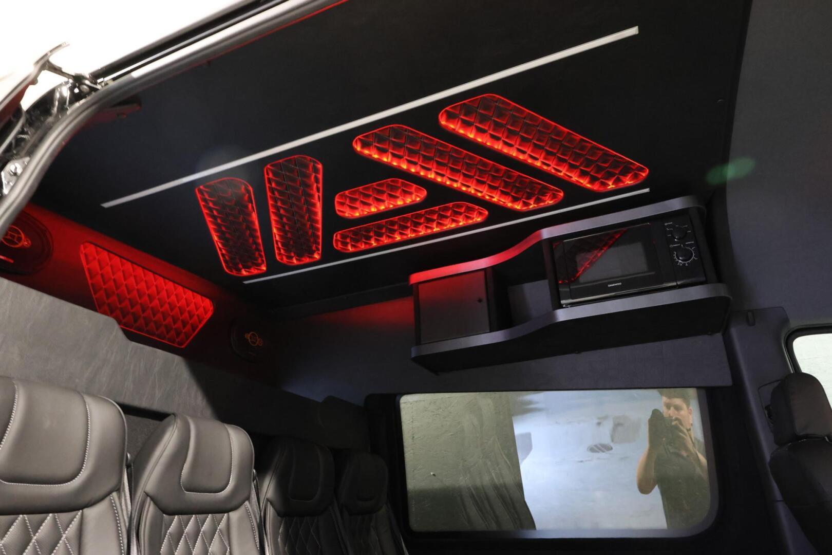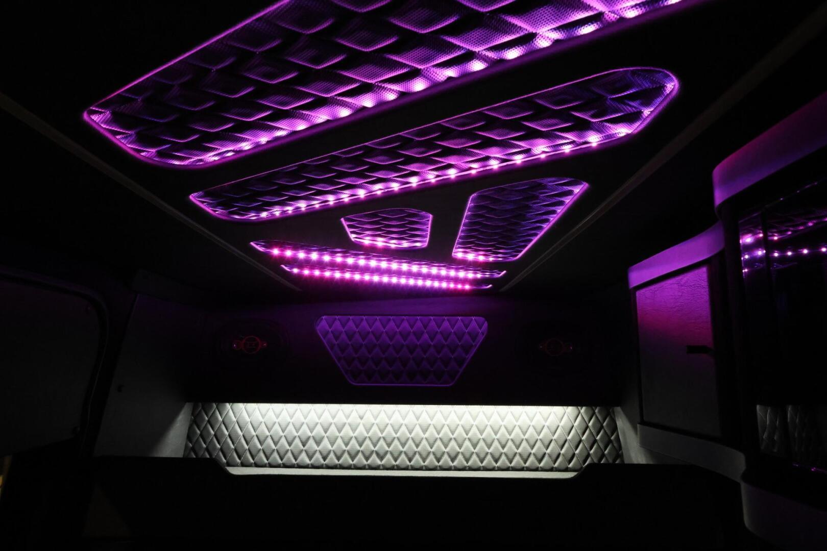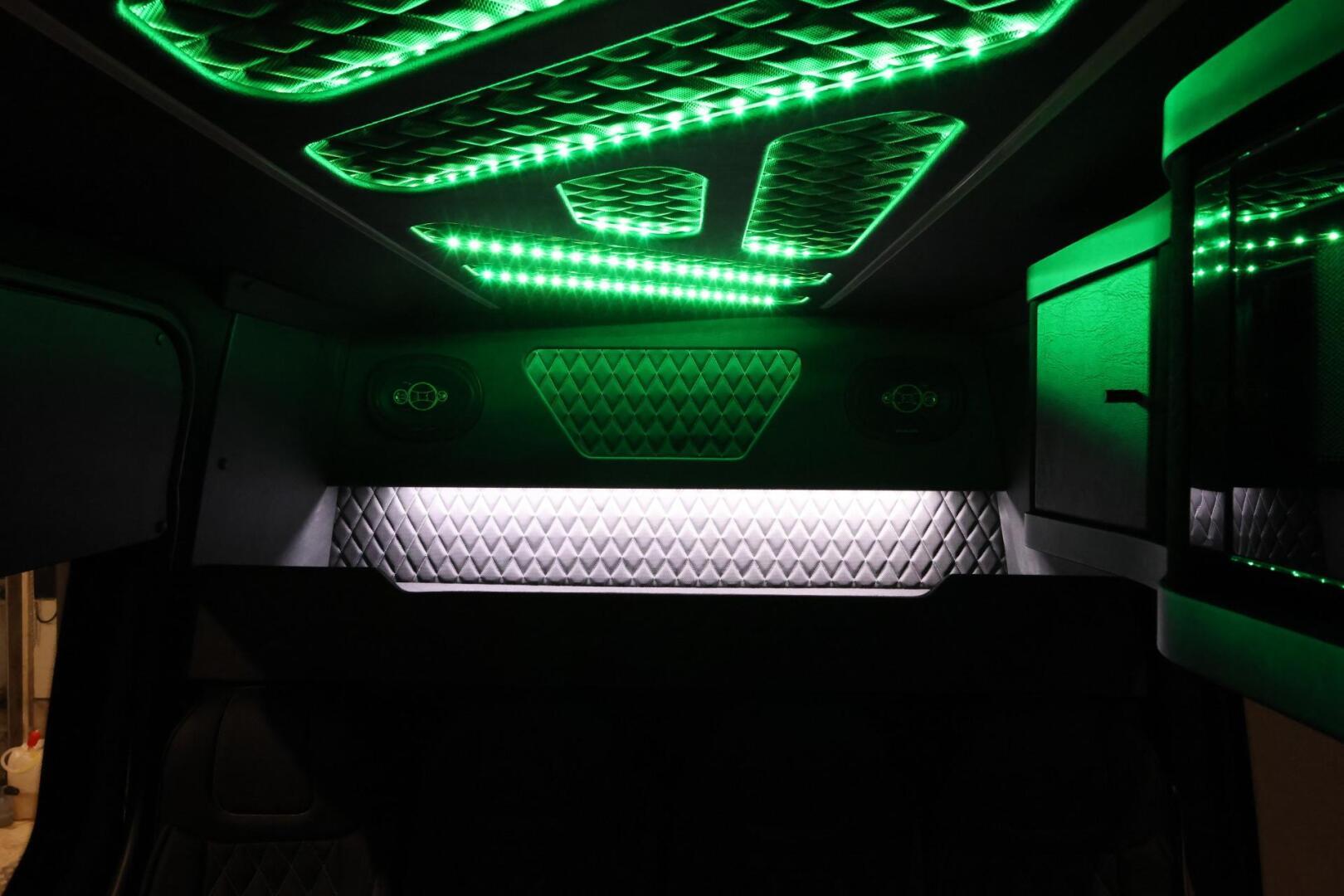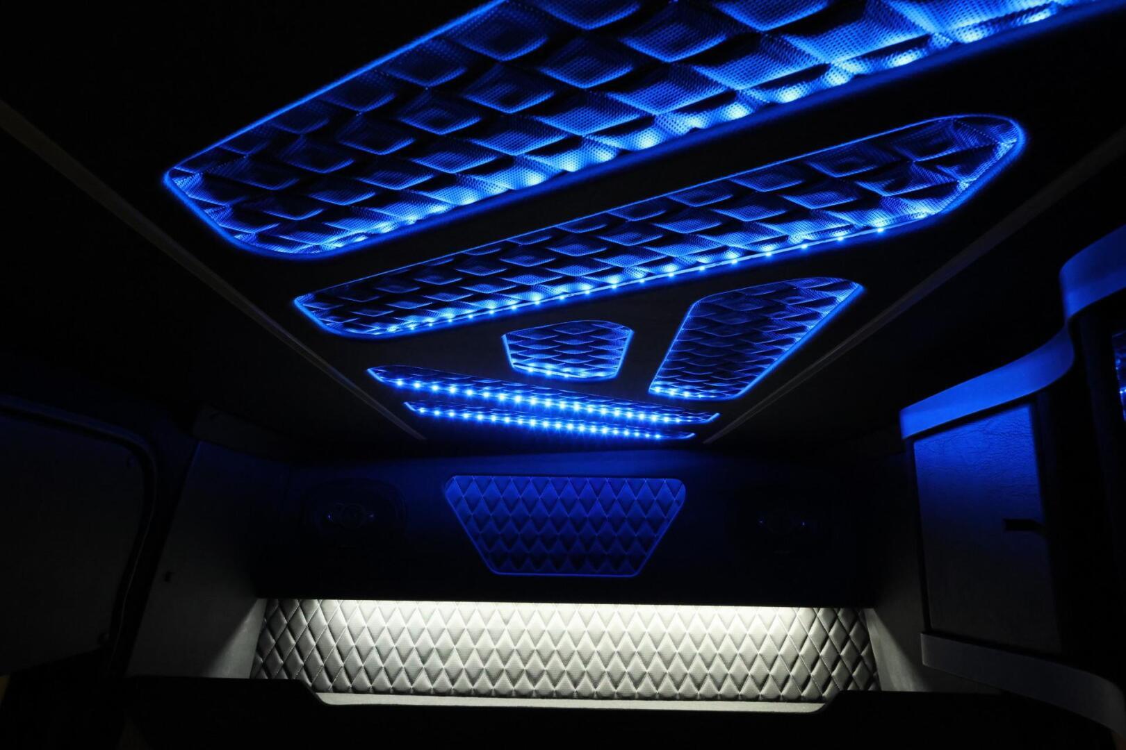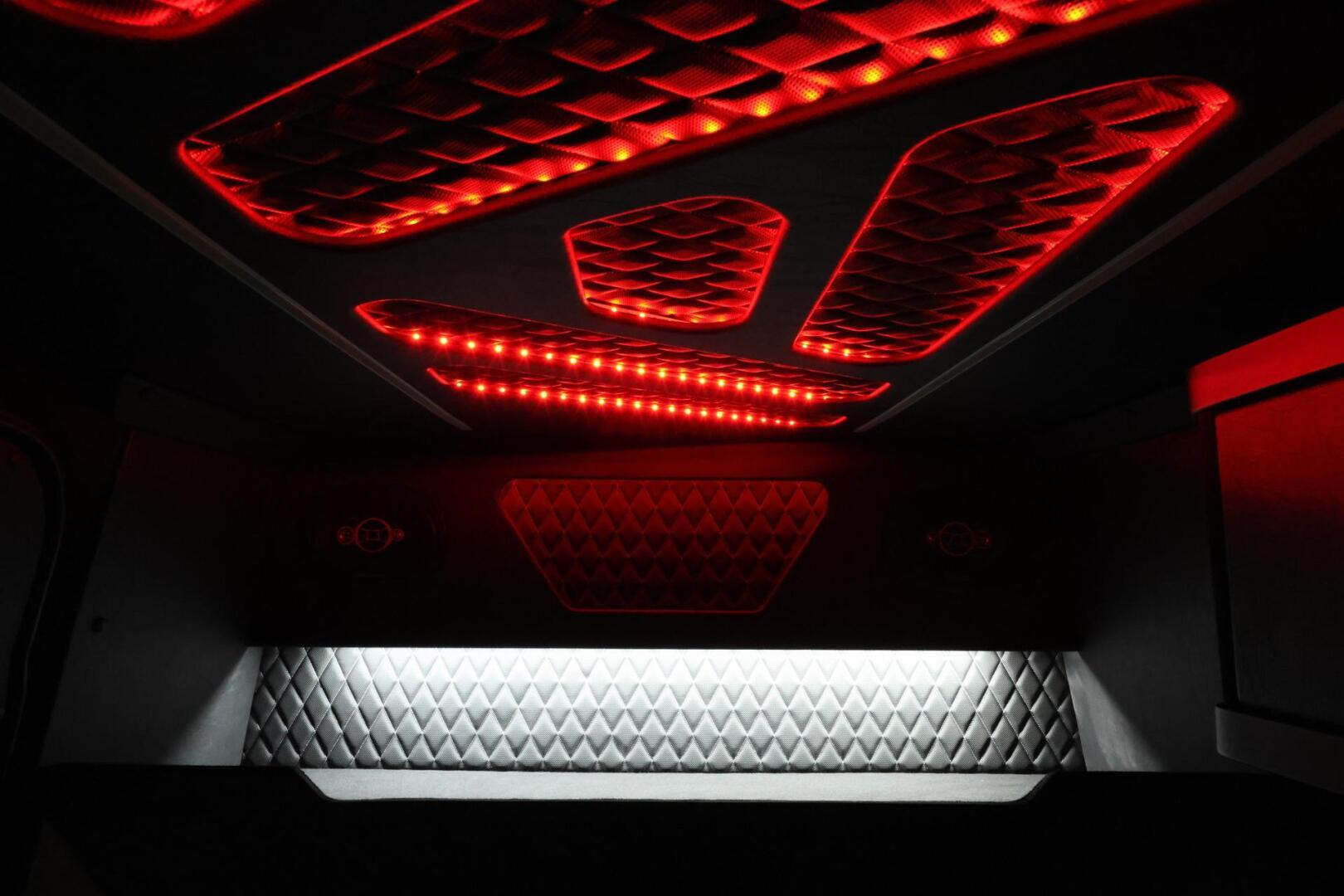 Sisusta on rakennettu kotimaisella käsityönä pieniä yksityiskohtia myöten. Jatko-ohjaamoon on asennettu jääkaappipöytä sekä mikro säilytyslokeroineen sekä lisää säilytys tilaa löytyy penkkien takaa hattuhyllyltä. Katolta saa päälle kirkkaan suoravalaistuksen sekä himmennettävän epäsuoravalaistuksen, jonka väriä voi vaihtaa mielensä mukaan.